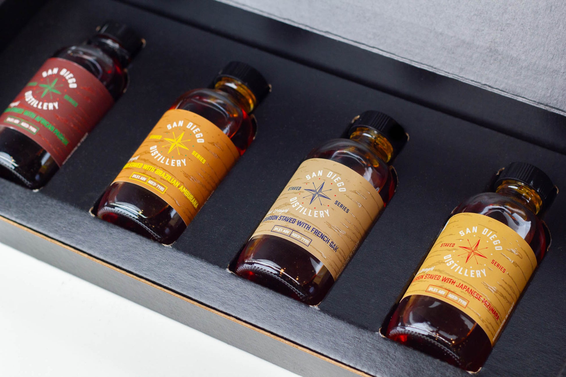Don't miss out on our exclusive Staved Series Bourbon Set. Featuring 4 x 7 year Indiana Bourbons that were staved with exotic woods from around the world. Each bottle offers its own unique profile enhanced by the various staves used in the aging process.